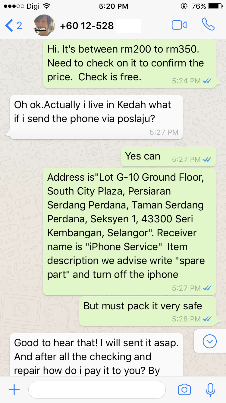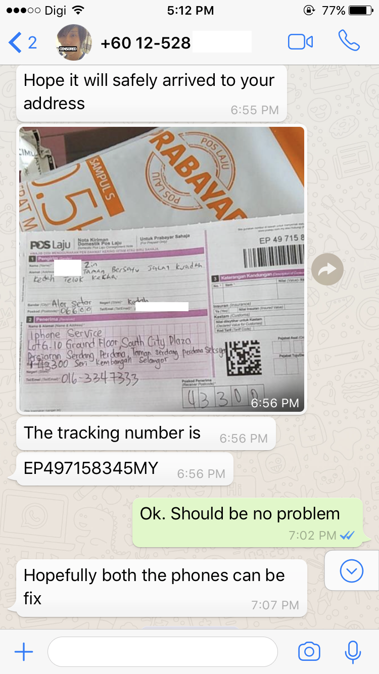 A customer from Kedah sent two iPhone to our shop by Pos Laju