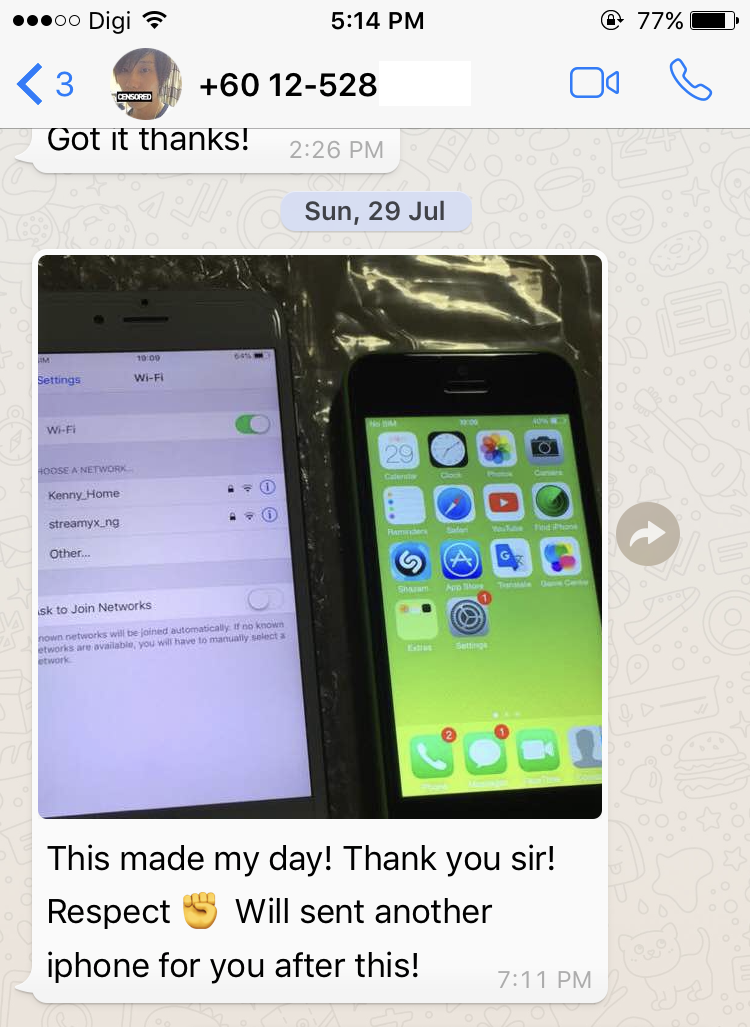 | Customer received both repaired iPhone6 and iPhone 5C on 29 Jul 2018 |
