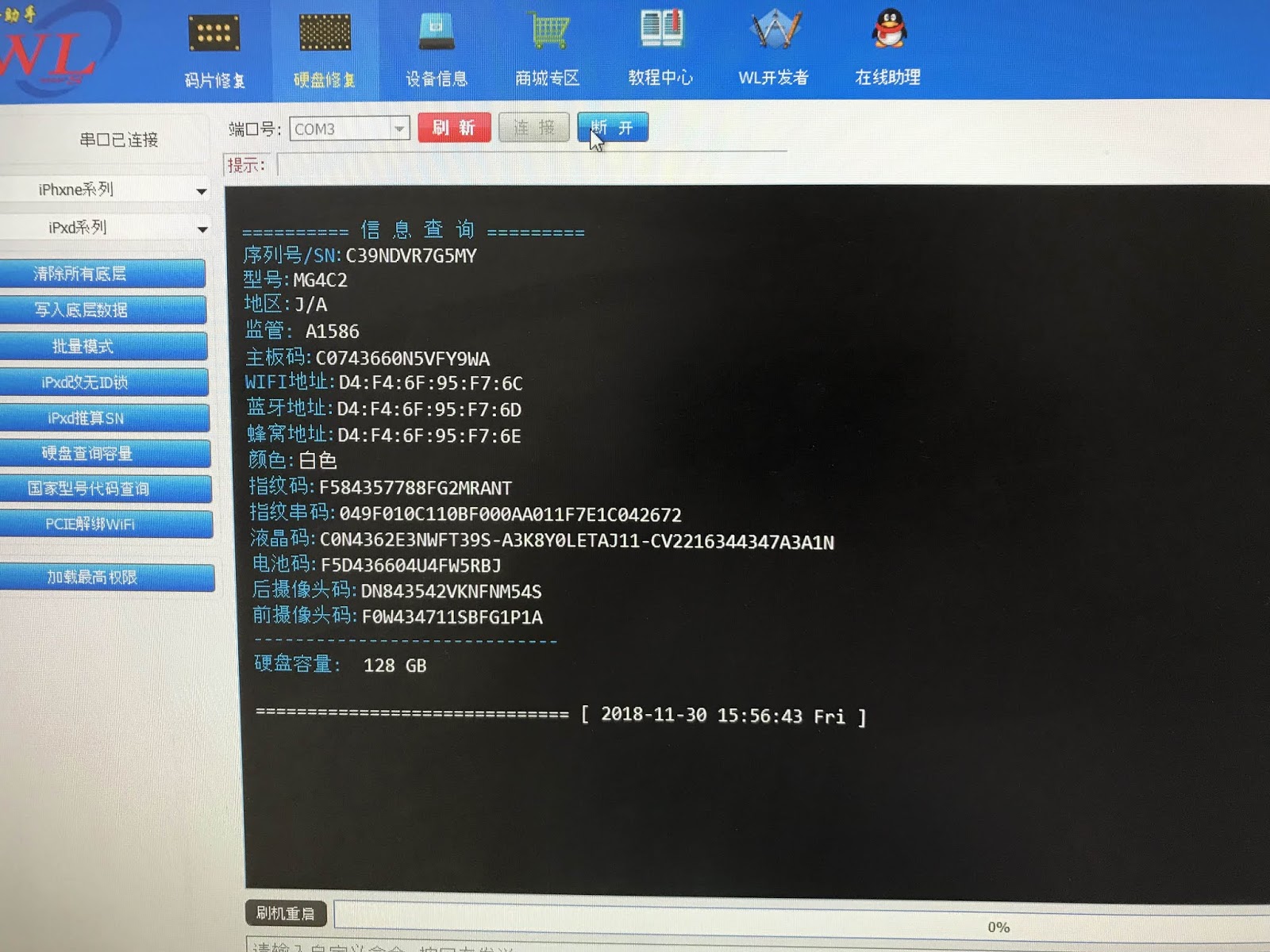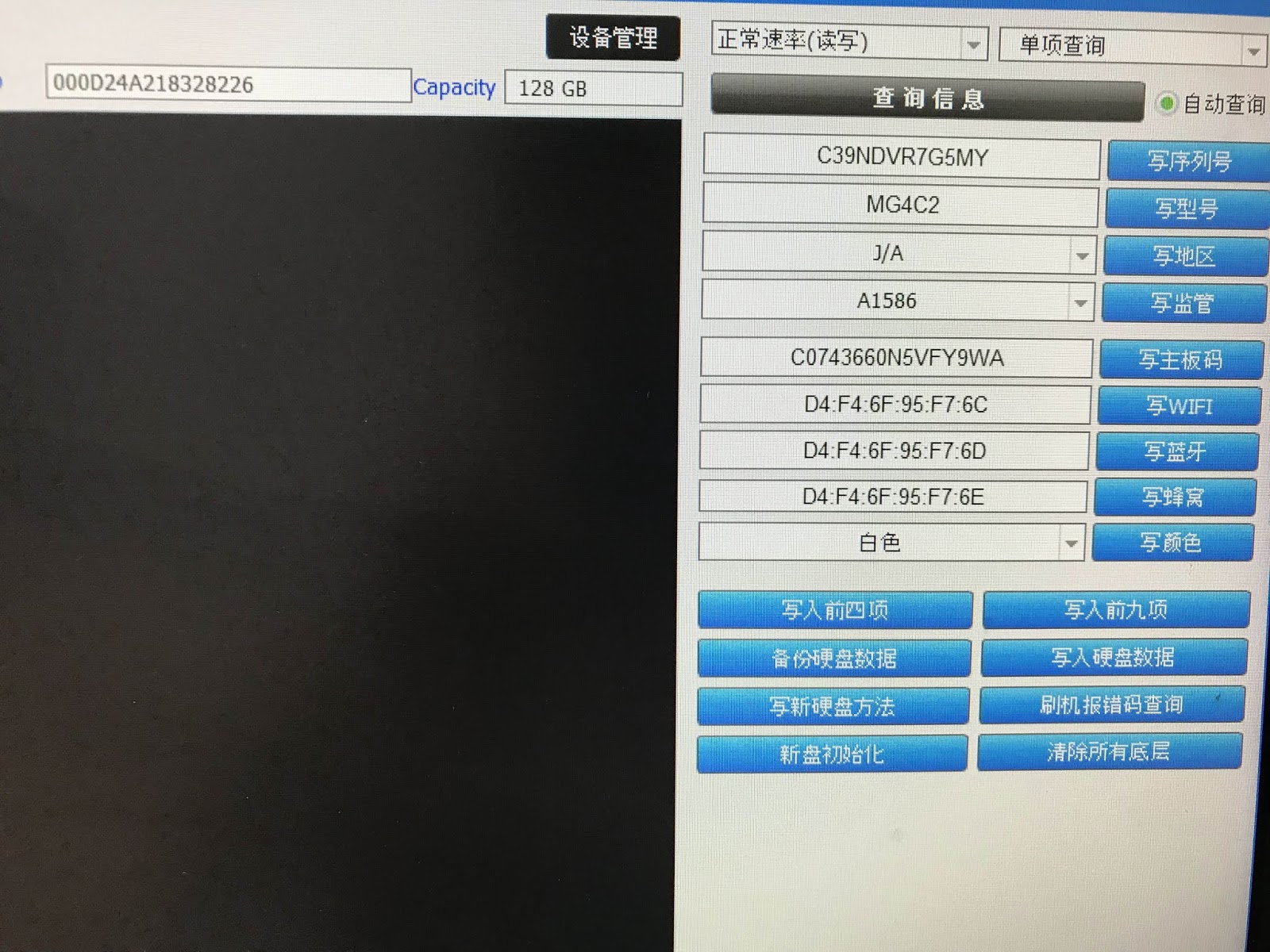 | Open the program and read the original NAND data. There will be a lot of code. Serial Number, WiFi Address, and more. There is one called region code. |