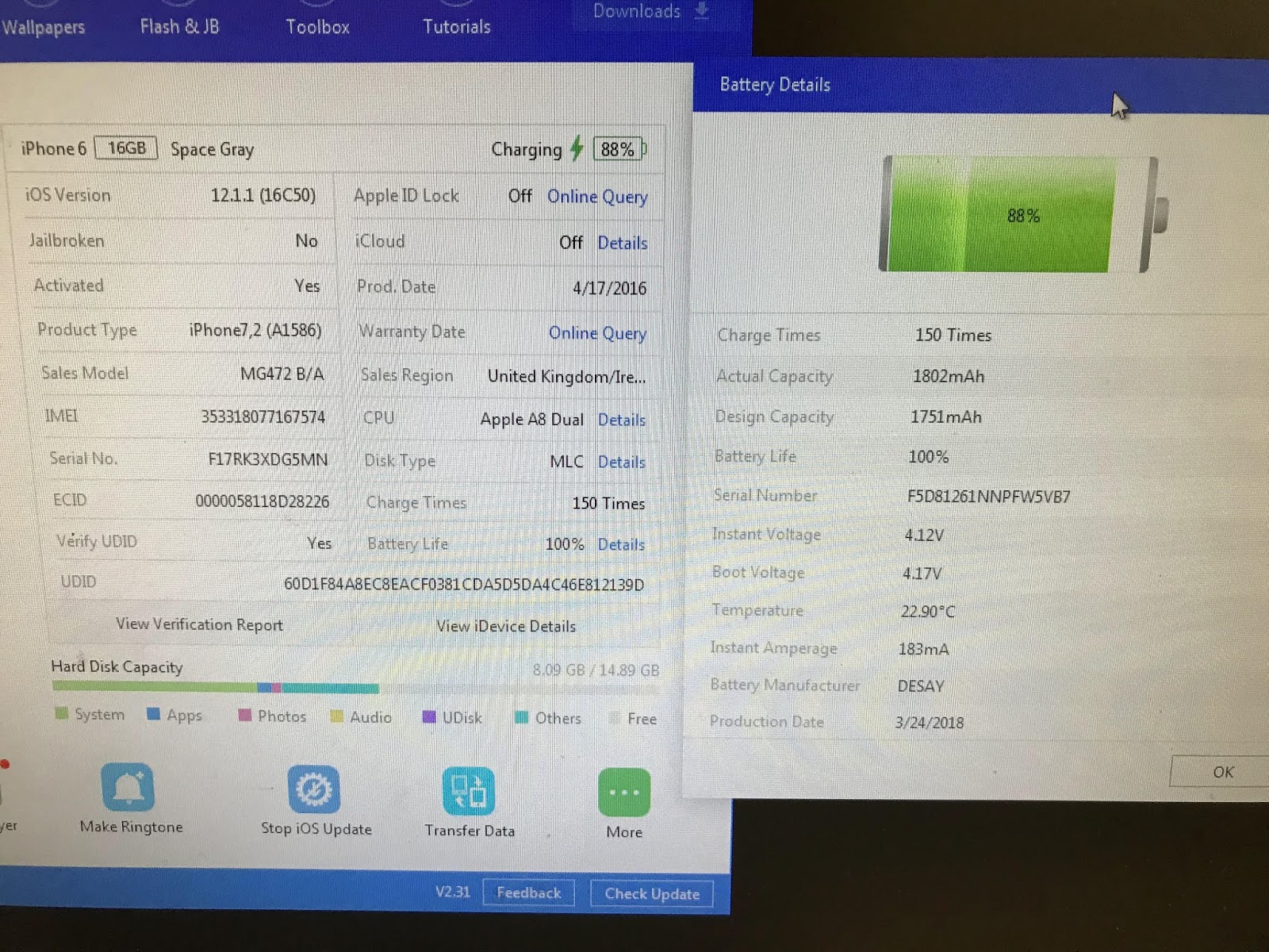 The 1st photo below is using iTool (Chinese version) and the 2nd Photo below is using 3U (English version)