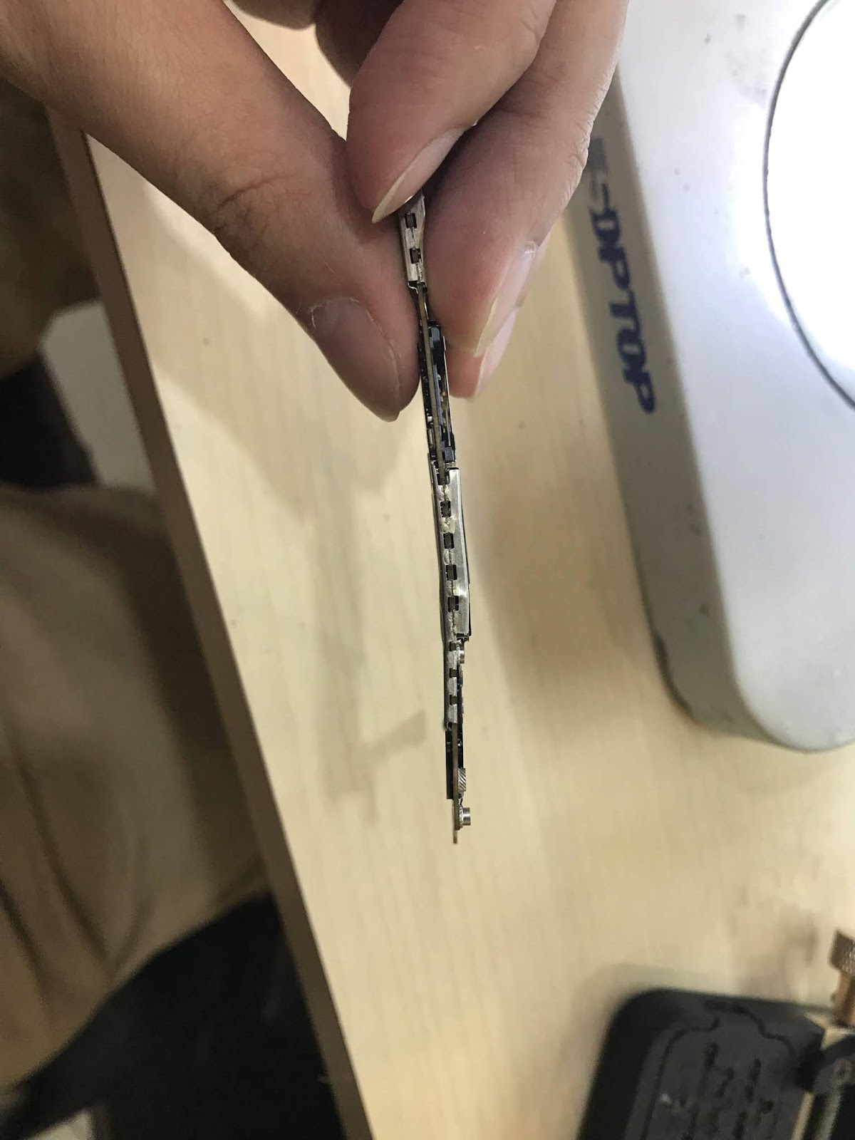 As the photo above. The bent iPhone board has already removed some components. Those components were transplanted into the board below. |