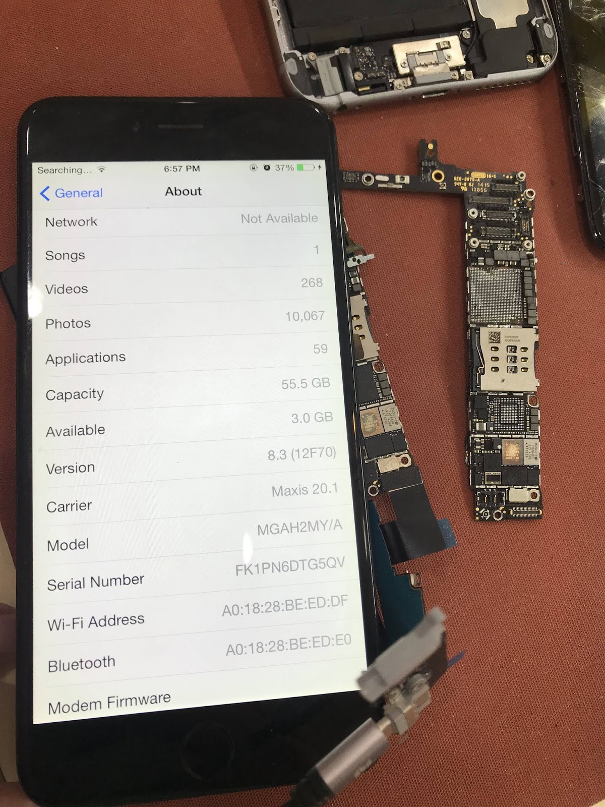 All the data remain. Exactly the same before the accident happened. We can notice it’s very old iOS – 8.3 !!! Sure it was broken very long time. Lucky the owner found me to carry such of job. This kind of job is really not “ah pig ah dog” can do. |