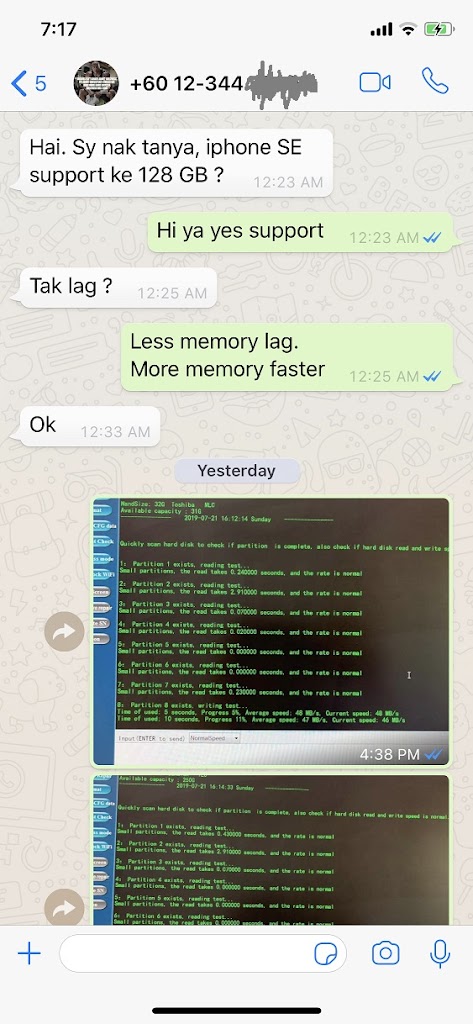 Because I get the non-stop people asking me this question: “Is it the bigger storage of the iPhone and it will be lagger (slow)?” The answer is NO. Because the speed is entirely up to the memory chip. Exactly like you buying a memory SDcard that have many different brand and speed. |